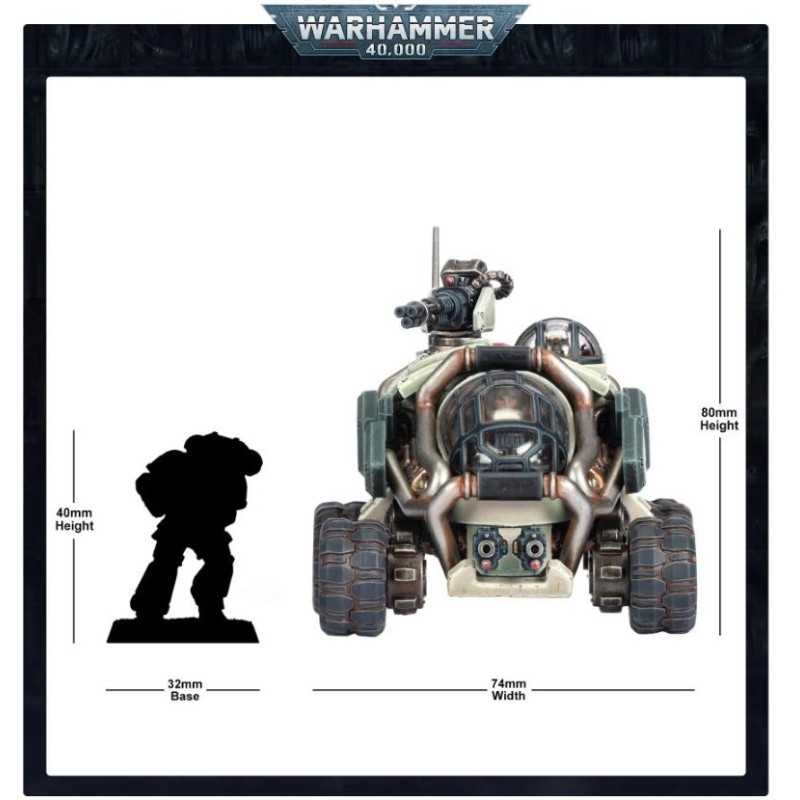 Description du produitConçu pour survivre sur les pires mondes hostiles et aux pires prédateurs extraterrestres, le Sagitaur est un VBTT parfaitement adapté aux missions de reconnaissance et aux assauts blindés rapides. Les Sagitaurs sont équipés d'une quantité remarquable d'armes pour des véhicules de leur taille, et ils peuvent même abattre des chars de combat ennemis tout en conservant une capacité de transport suffisante pour de petites escouades expéditionnaires.