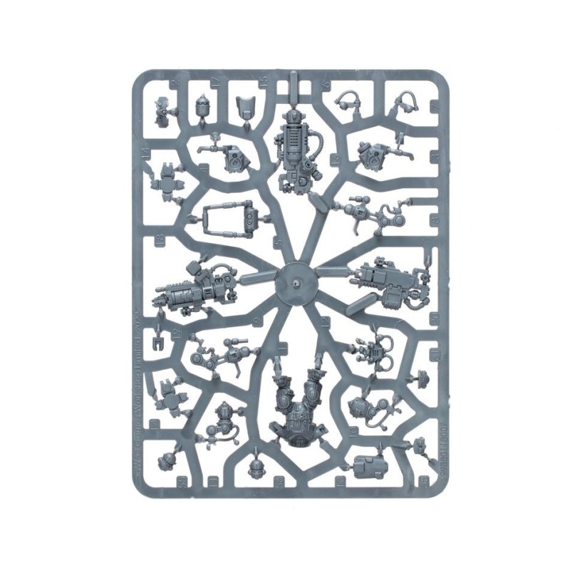 Les Beserks Cthoniens peuvent être équipés de haches à plasma lourdes ou de masses à percussion. Vous trouverez également deux paires de gantelets à percussion jumelés et les éléments nécessaires pour assembler deux Beserks Cthoniens armés d'un lance-grenades taupe, accompagné de chargeurs L-COG. Quatre figurines de grenade taupe sont également fournies, pour aider à garder trace des effets de ces explosifs fouisseurs.