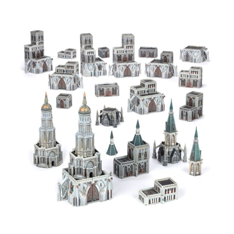 Ce kit plastique permet d'assembler un set de bâtiments à l'échelle epic, conçus pour être utilisés dans les parties de Legions Imperialis et d'Adeptus Titanicus. Ce set modulaire peut être agencé et empilé selon diverses configurations: des dizaines de petits bâtiments, ou quelques tours suffisamment hautes pour fournir un couvert à un Titan Warlord.