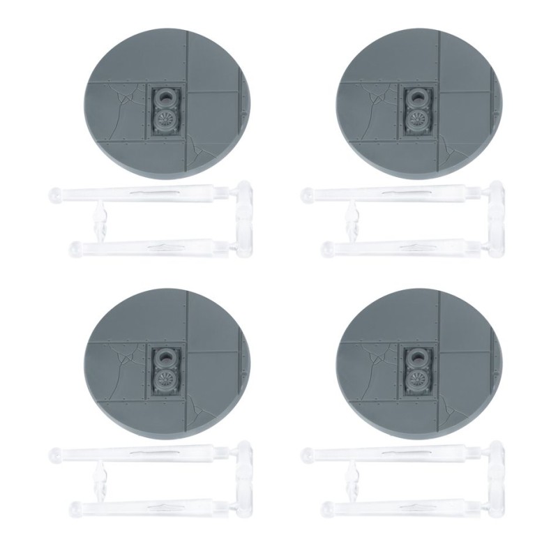Ce pack contient quatre Socles Ronds Legions Imperialis de 40mm de diamètre et de 2mm de hauteur, ainsi que quatre tiges à rotule.