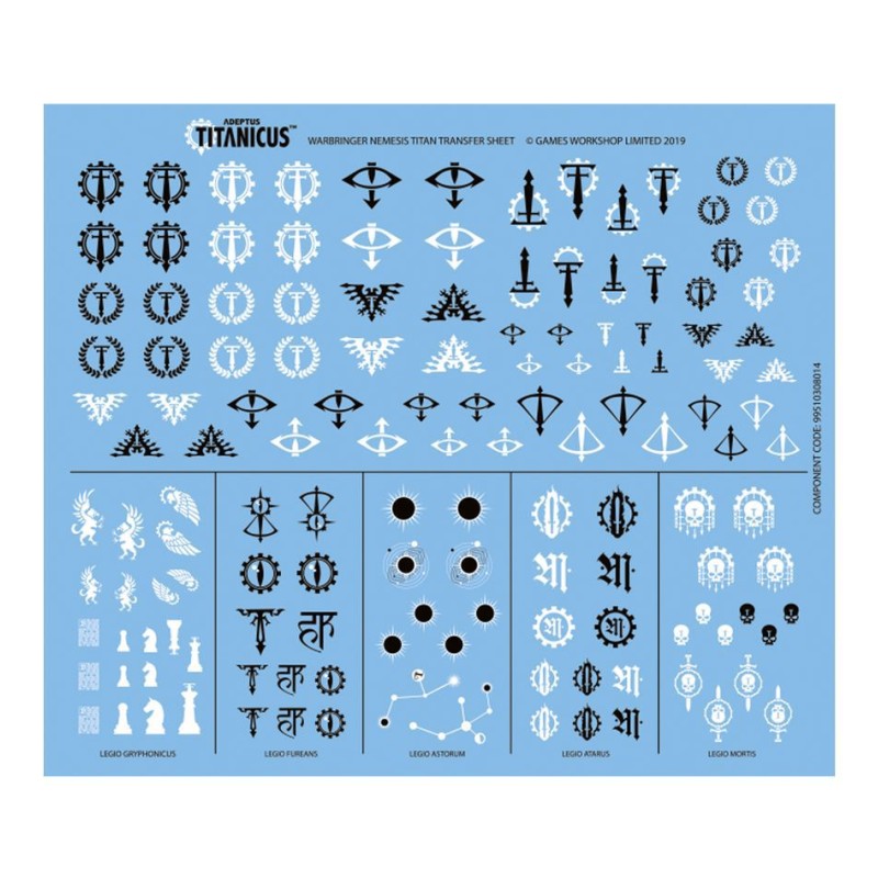 - 1x Planche de Décalcos de Titan Warbringer Nemesis Adeptus Titanicus