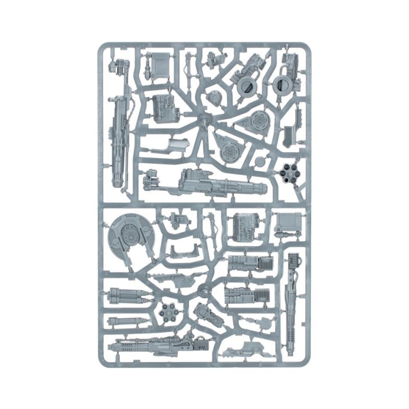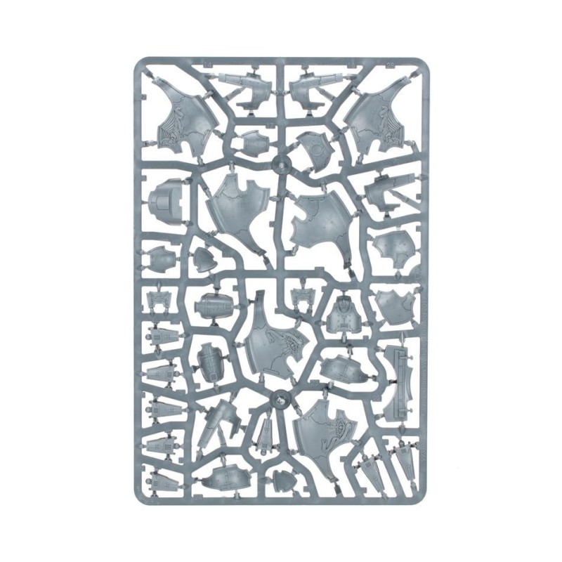 Ce kit propose de nombreux détails et offre de nombreuses manières de personnaliser votre Titan. Vous trouverez des boucliers héraldiques et différents styles de plaques de blindage sculptées de motifs. Le kit présente des articulations à différents endroits, ce qui vous permet de choisir la position de votre Titan au niveau de la tête, des genoux, de la taille et bien plus. Ses batteries de défense et son arme de carapace sont également ajustables, ce qui signifie que vous pouvez les faire viser là où vous voulez, voire les assembler sans colle pour les repositionner en cours de partie.