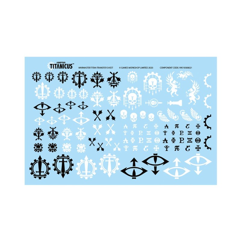 - 1x Planche de Décalcos de Titan Warmaster Adeptus Titanicus