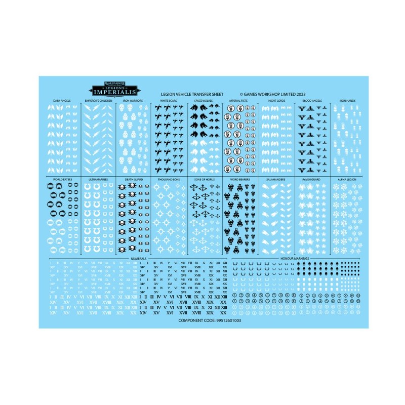- 1x Planche de Décalcos de Véhicules de Légion pour Legions Imperialis proposant 1118 décalcos