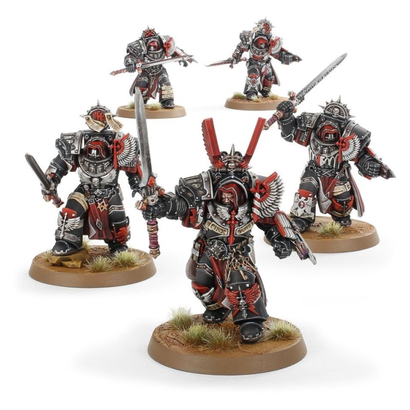 Vêtu de la plus exquise armure Terminator Cataphractii, chaque chevalier porte une épée grise terrienne unique et est couvert de l'iconographie de la Légion des Dark Angels. Ces fiers guerriers sont idéaux pour les endroits où les combats sont les plus brutaux, car leur armure les protège et leurs canons à plasma détruisent l'infanterie ennemie avec facilité.