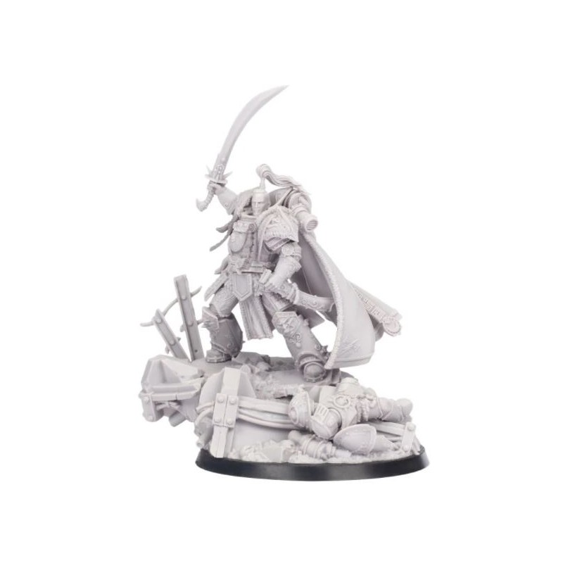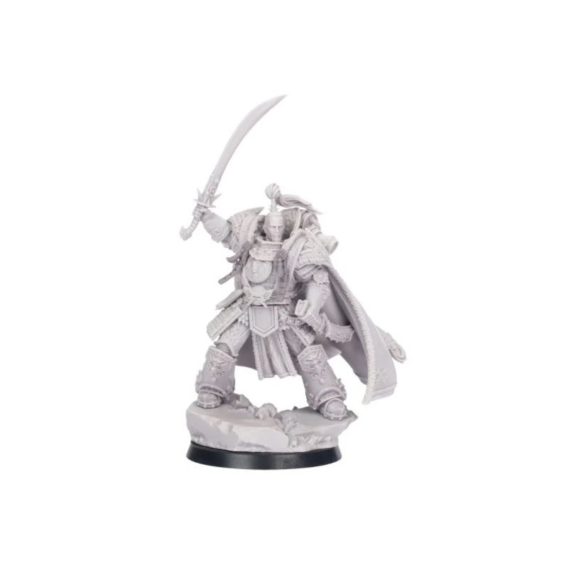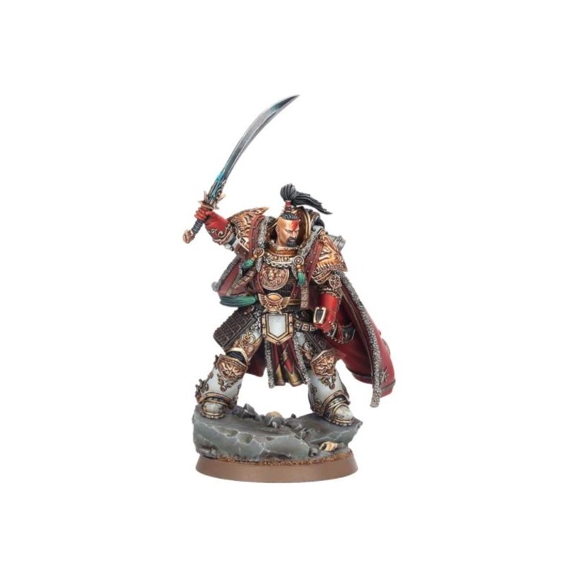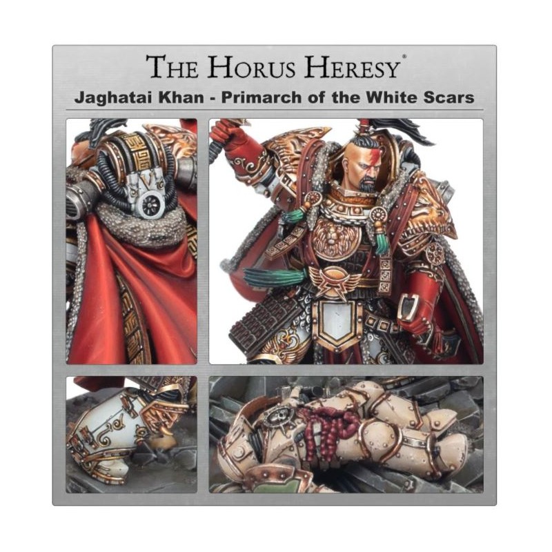 Le Grand Khan lui-même, Primarque des White Scars, Jaghatai Khan est sculpté au milieu de la bataille, après avoir tué un traître légionnaire de la Death Guard. Dans une main, il brandit son arme emblématique, le White Tiger Dao. Son armure, la Wildfire Panoply sur mesure et exquise, est travaillée avec des détails incroyables et ornés. Par-dessus, il porte une longue cape fluide, digne de son statut de chef des White Scars. Ce modèle constituera un excellent défi pour les peintres, avec une grande variété de textures et des détails finement sculptés. Son visage est déterminé mais serein, et avec sa pose, il capture la majesté de Jaghatai, peut-être le plus grand guerrier et tacticien de tous les primarques. En plus d'une base de jeu de 40 mm, complétée par un affleurement rocheux, il s'intègre également dans une base de diorama de 60 mm représentant une fortification en ruine avec un marine traître mort de la Death Guard en armure MKIII.