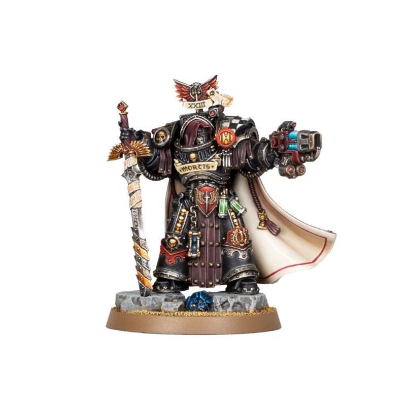 Ce kit en résine en plusieurs parties permet de construire un Marduk Sedras, un personnage unique appartenant à la Légion des Dark Angels. Ce puissant commandant est vêtu de la Regalia of the Shattered Sceptre, une armure Terminator Cataphractii très détaillée, décorée d'innombrables honneurs, badges et inscriptions. Les armes de Marduk illustrent parfaitement la dévastation qu'il exerce en tant qu'Eskaton de la Première Légion : des bombes au phosphex pendent à sa ceinture, chacune contenant une horrible charge de mort alchimique corrosive, tandis que son brûleur à plasma est un dérivé terrifiant de la technologie du plasma dont seuls les Dreadwing disposent. Son épée massive en patchwork s'appelle La Mort des Mondes - une lame relique soudée à partir de fragments d'arcologies de ruches que l'Eskaton a condamnées à mort. Après des siècles de destruction, l'épée a grandi au point de ne pouvoir être maniée que par les Astartes les plus forts.