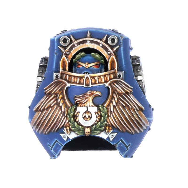 Ce kit d'amélioration permet de personnaliser un cuirassé Contemptor avec une tête et un torse en résine, sur le thème de la Légion Ultramarines. La tête est ornée d'une couronne de laurier royale, tandis que le torse présente des éléments distinctifs tels qu'un aigle impérial resplendissant aux plumes sculptées, une auréole et un collier décoratifs, ainsi que l'icône des Ultramarines entourée d'une couronne de laurier. Il est parfait pour ajouter la signature de la XIIIe Légion à vos puissants Dreadnoughts Contemptor.