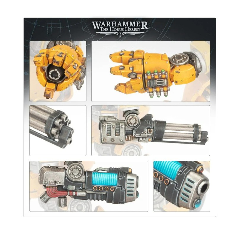 Ce set est constitué de 57 composants en plastique et est conçu pour être assemblé avec le set de Dreadnought Contemptor, vendu séparément. Ces composants sont fournis non peints et nécessitent assemblage.