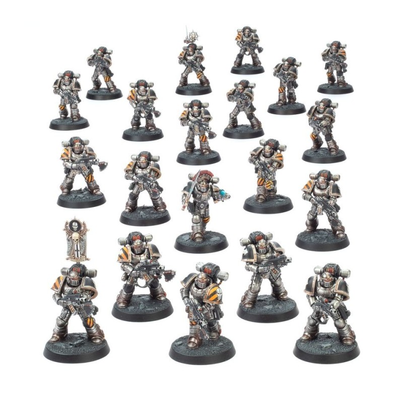 Ce kit permet d'assembler une seule grande unité, ou deux unités plus petites de 10, chacune avec son propre Sergent, Légionnaire avec nuncio-vox et Légionnaire avec vexillum optionnels. Le Sergent dispose d'un choix entre trois têtes – deux nues, et une avec un casque à cimier transversal. Il peut être armé d'un bolter ou d'un pistolet à plasma, et d'une épée énergétique, d'un gantelet énergétique ou d'une griffe Lightning. Il peut aussi recevoir une bombe à fusion optionnelle. Les Légionnaires avec bolter peuvent recevoir une baïonnette ou une baïonnette tronçonneuse optionnelles, et les têtes et accessoires – ce qui inclut des grenades, des holsters de pistolets et des étuis – sont interchangeables entre les figurines.