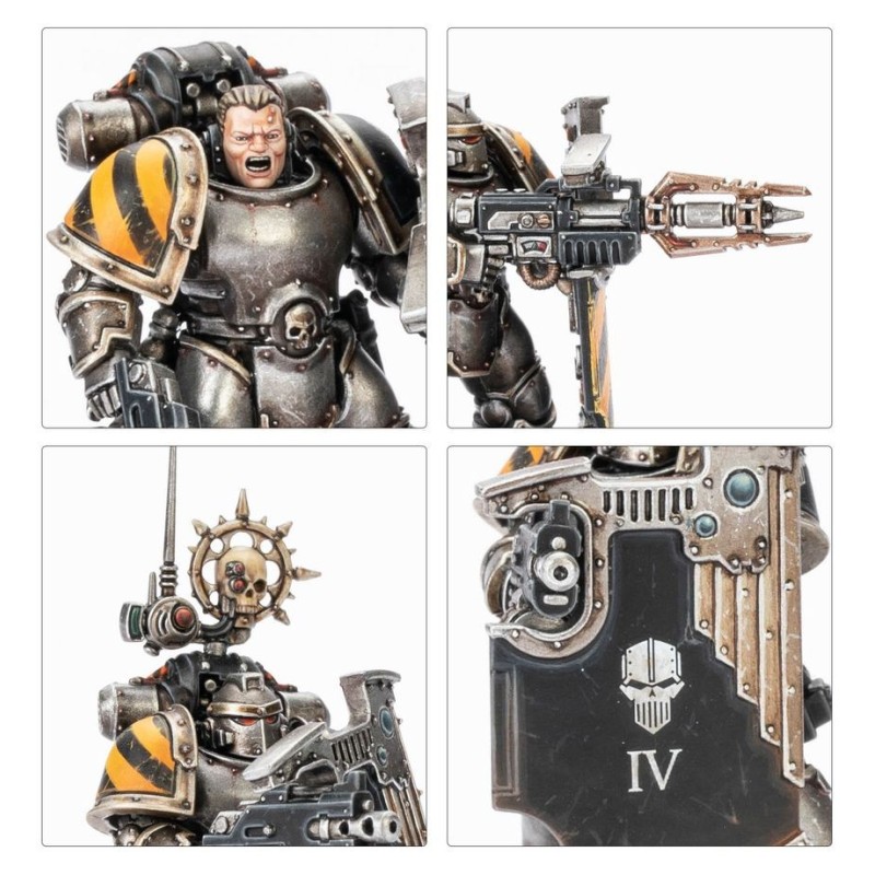 Le kit contient les éléments nécessaires pour assembler un Sergent optionnel, un Légionnaire avec nuncio-vox, un Légionnaire avec vexillum et un Légionnaire avec scanner augure. Le Sergent dispose d'un choix de deux têtes, une nue et une casquée, peut être armé d'une épée énergétique, d'un gantelet énergétique ou d'une griffe Lightning et peut aussi porter une bombe à fusion optionnelle. Un des Légionnaires peut être armé d'un fusil à gravitons et un autre peut être armé d'un découpeur laser. Vous y trouverez également des accessoires interchangeables entre les figurines, tels que des grenades, des holsters et des sacoches.