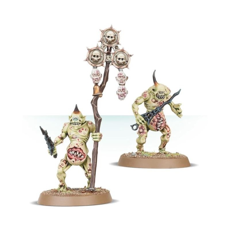 Ce kit plastique contient 74 éléments, dix socles carrés de 25mm et dix socles ronds de 25mm permettant d'assembler dix portepestes de Nurgle. Il inclut de quoi assembler un état-major, y compris un pouacre, un porte-étendard et un musicien.