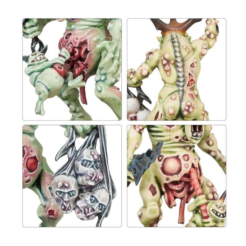 Chacun des dix Plaguebearers de Nurgle peut être assemblé de façon unique et révulsante. Chaque combinaison possède différents détails comme des plaies béantes, des têtes en guise de trophées que les démons tiennent dans leurs mains, un Nurgling niché dans leurs entrailles, des tendons et des os exposés, voire des cornes qui dépassent de leurs têtes. Chaque Plaguebearer arbore plusieurs rangées de dents effilées, ils ne possèdent qu'un œil pour la plupart, bien que certains puissent en avoir plus, et tous brandissent une lame rouillée et infectée appelée épée pestilentielle.