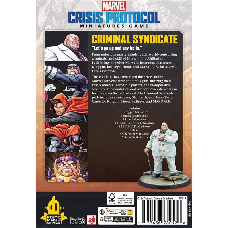 Retrouver l'affiliation Criminal Syndicate dans cette boîte pour Marvel : Crisis Protocol.
