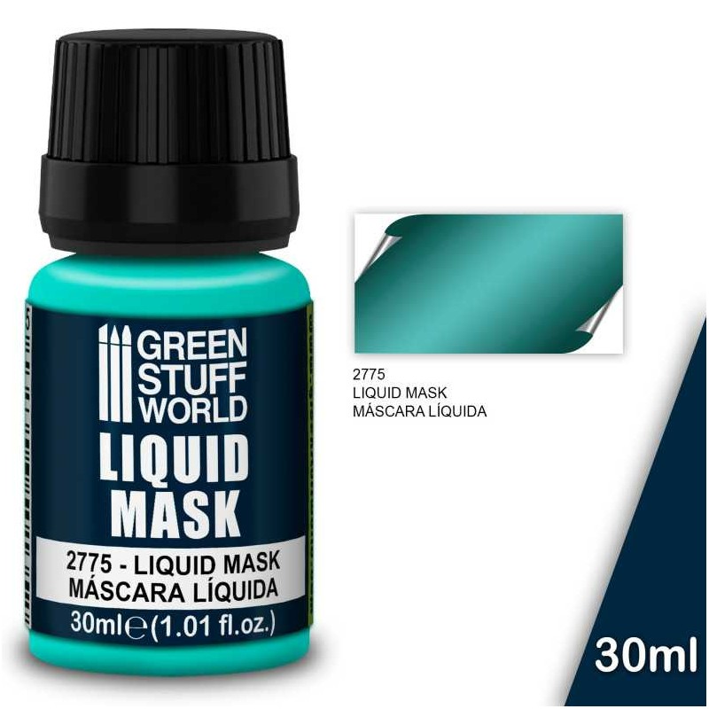 Masque liquide bleu turquoise qui couvre et protège les zones de votre silhouette ou maquette que vous ne voulez pas peindre. Lorsque le liquide est sec, une fine pellicule se forme qui, une fois que vous avez fini de peindre le reste de votre silhouette, pourra être retirée très facilement en tirant dessus.