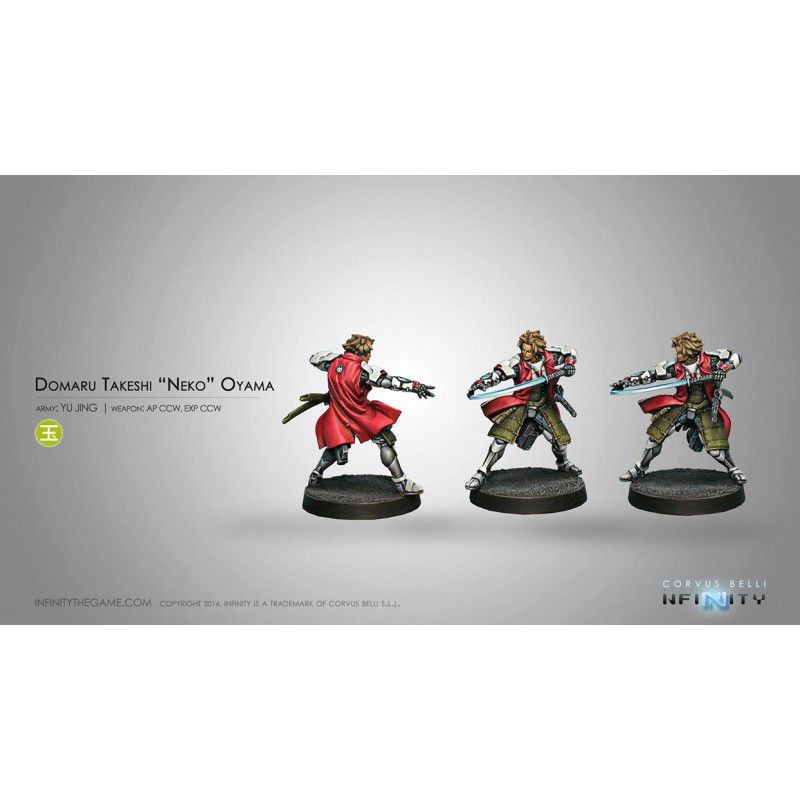 Le Domaru Takeshi "Neko" Oyama est un guerrier samouraï de la vieille école, droit et honorable, un modèle du parfait Bushi. Son visage, maigre et sérieux, affiche toujours une expression résolue et sobre. Il a une attitude secrète et taciturne et son comportement dans tous les domaines de la vie est guidé par le credo du code Bushido. Il porte ses cicatrices avec fierté, comme une marque de virilité, mais en bon Bushi, il ne s'en vante jamais. Pour cette raison, les gens pensaient d'abord qu'Oyama était un individu très chanceux. Son surnom "Neko" (猫 "chat" en japonais) est dû à sa capacité à tomber toujours sur ses pieds et au grand nombre de vies qu'il semble avoir. Mais il ne compte pas seulement sur la chance. Oyama est un guerrier vétéran qui a survécu à de nombreuses batailles simplement en étant le meilleur. Issu d'une grande famille nippone de Bushi, sa vie a toujours été orientée vers son entraînement de guerrier. Il s'est entraîné aux dojos des maîtres les plus prestigieux, où il a mis en valeur son talent de duelliste supérieur. Il s'est enrôlé dans l'armée, poussé par un sens de l'honneur personnel fort et non par un désir de prestige social.