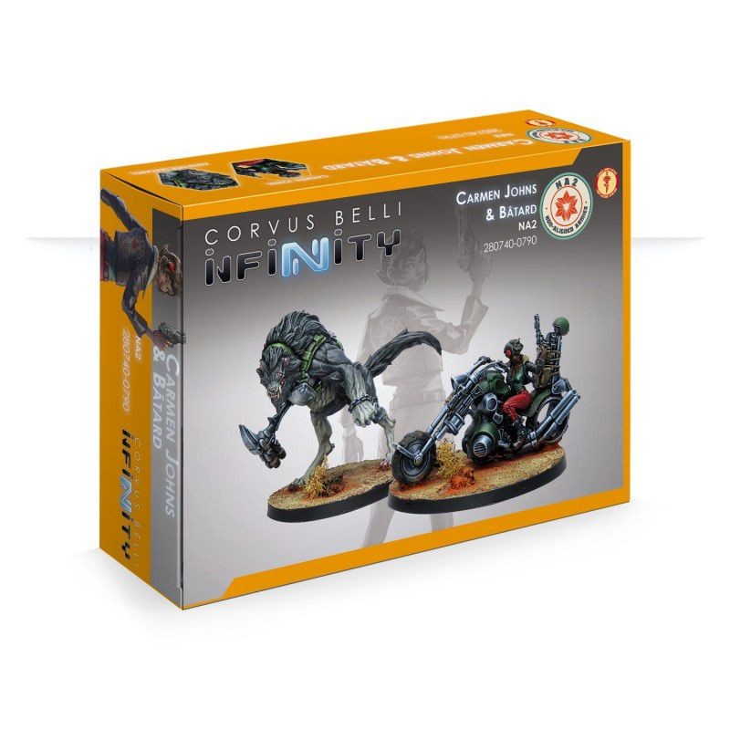Description du produitCarmen Johns est un démon. C'est quelque chose de bien connu dans tout le territoire frontalier d'Ariadna. Et Bâtard, qui ne la quitte jamais, est une progéniture de l'enfer qui est encore pire. Il n'est donc pas surprenant qu'ils forment un si bon couple, mais dans le pire sens du terme. Cette boîte comprend deux figurines : Carmen Johns montée sur une Moto et Bâtard.