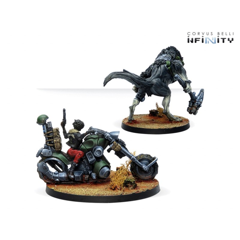 Ajoutez la force brute avec une grande rapidité à votre armée avec ce dangereux motard mercenaire et son partenaire.