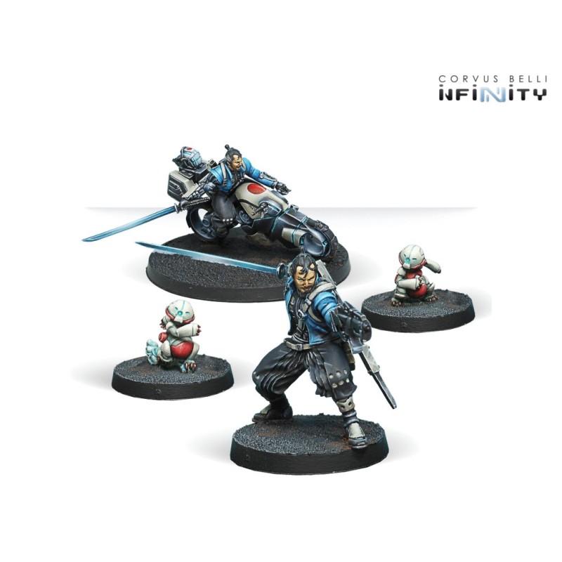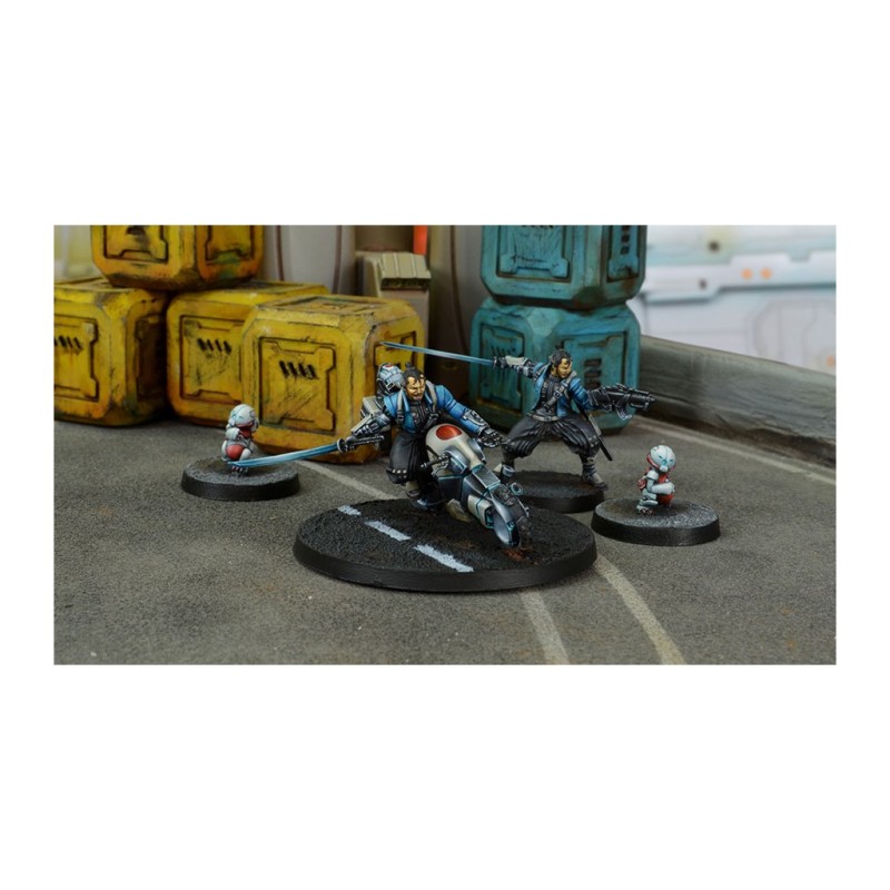 Ce blister contient 4 figurines en métal pour le jeu Infinity. Les socles sont inclus. Les figurines sont à assembler et à peindre.