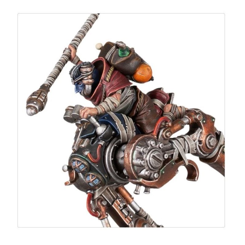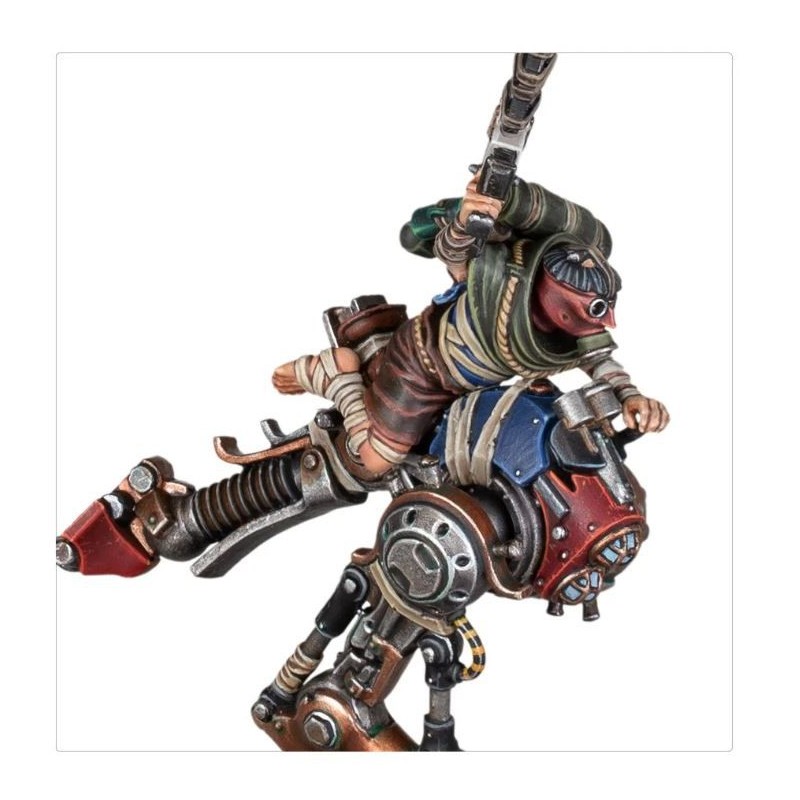 Description du produitLes Way-Brethren sont les éclaireurs des croisades de la Rédemption dans les désolations. Montés sur des Ridge Walkers mécaniques, ces infatigables pèlerins avancent en tête des masses grouillantes de fidèles, ouvrant pour ceux qui les suivent la route entre les sanctuaires et les lieux saints des désolations de cendre de Necromunda. Les Ridge Walkers sont des machines-montures robustes qui font des Way-Brethren des combattants aussi rapides que mortels, capables de charger l'ennemi ou d'enfoncer les lignes adverses avec une énergie chevaleresque.