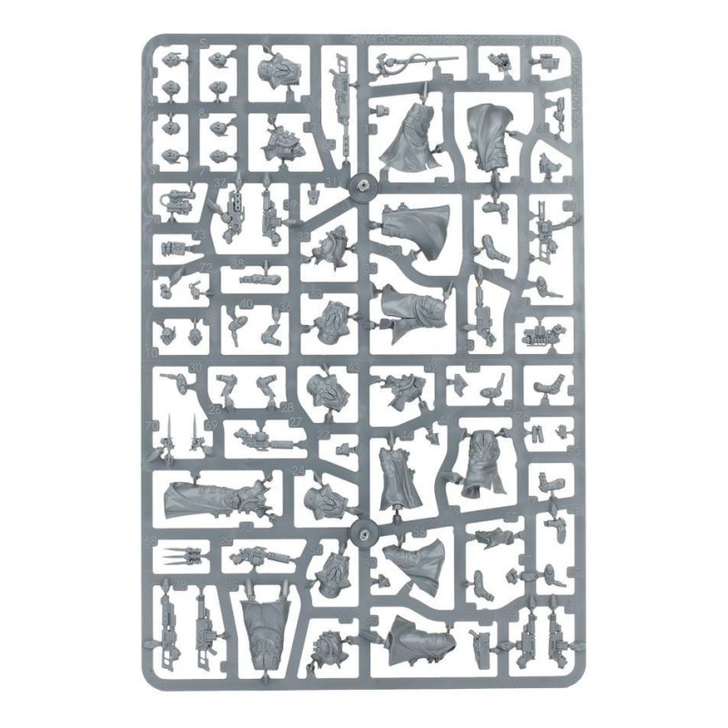 Cette boîte contient 10 figurines plastique de gangers Delaque à assembler, ainsi que 10 socles Necromunda de 25mm.