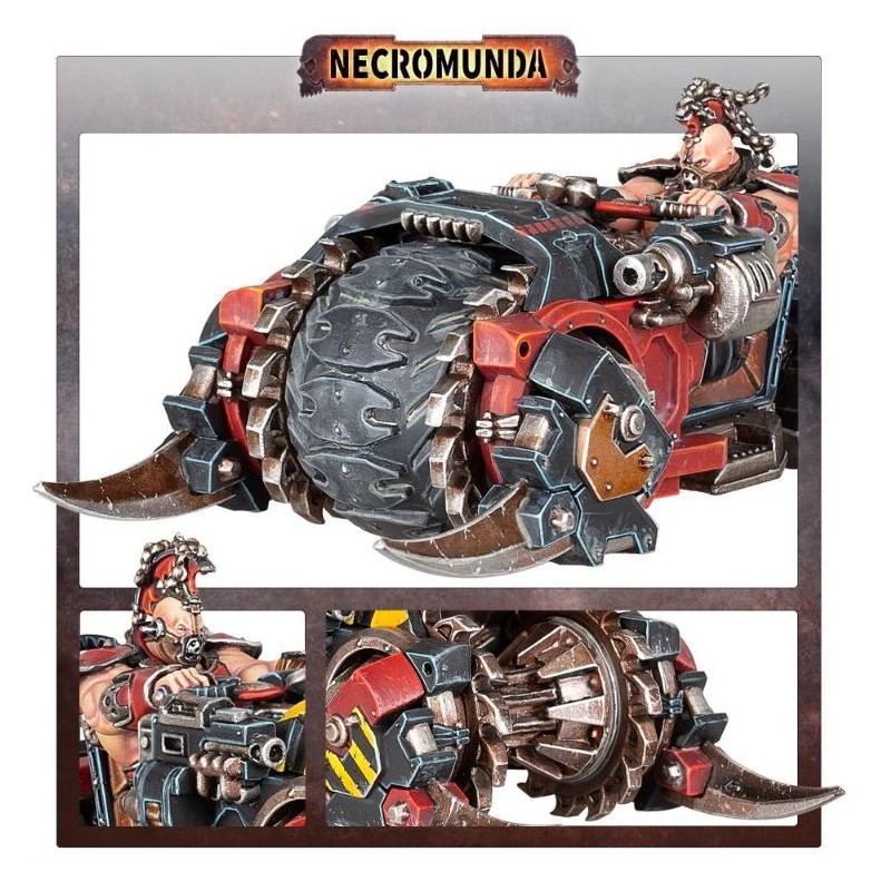 Description du produitLes Maulers sont des véhicules massifs et lourdement blindés, parfaitement adaptés aux membres du gang de la Maison Goliath. Leur transmission hydraulique combine chenilles et roues pour leur permettre de franchir tout type de terrain, tandis que le bélier énergétique monté à l'avant cause de terribles dégâts à tout ce qui a la mauvaise idée de rester sur leur passage. Brutal, bruyant et presque impossible à arrêter, un Mauler en charge est un spectacle terrifiant : l'esprit même de la Maison des Chaînes, incarné dans l'acier et les gaz d'échappement.