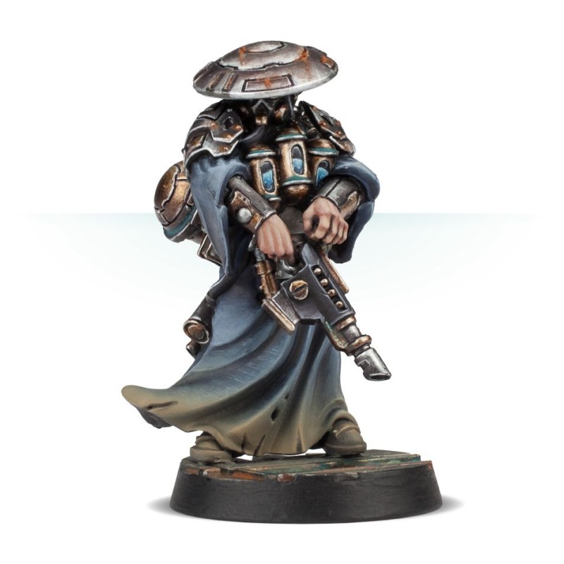 Description du produitEyros était autrefois un ouvrier de la ruche de Cogtown, l'une des âmes suantes et émaciées chargées de réparer les réseaux de tuyaux rouillés qui alimentaient la lugubre colonie. Au plus profond des puits, près du fond de la ruche, il a trouvé et revêtu un étrange archéo-rig qui, s'il lui a donné force et vie, lui a aussi donné une soif brûlante. Il s'avéra que si l'eau peut être trouvée dans beaucoup de choses, peu de choses à Necromunda en ont autant que les humains. Eyros ne laisse que de la poussière et de la ferraille dans son sillage, cherchant sans cesse de nouvelles victimes à qui arracher chaque morceau de fluide. De nos jours, il est difficile de dire ce qu'il reste d'Eyros sous l'archéo-cybernétique, et il est impossible de dire ce qu'Eyros deviendra une fois que l'archéo-technique en aura fini avec lui.