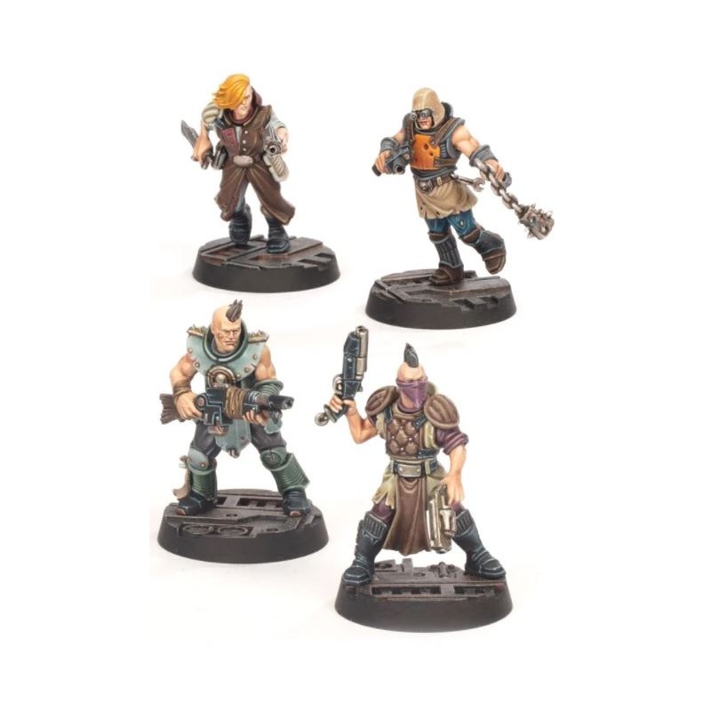 Cette boîte vous permet d'assembler 4 figurines plastique à ajouter à votre gang d'Outcasts ou de Maison, avec un large éventail d'options de personnalisation, dont 10 armes et 8 têtes différentes.