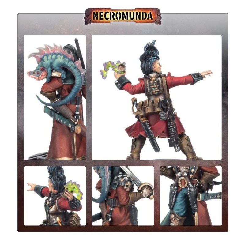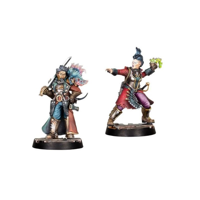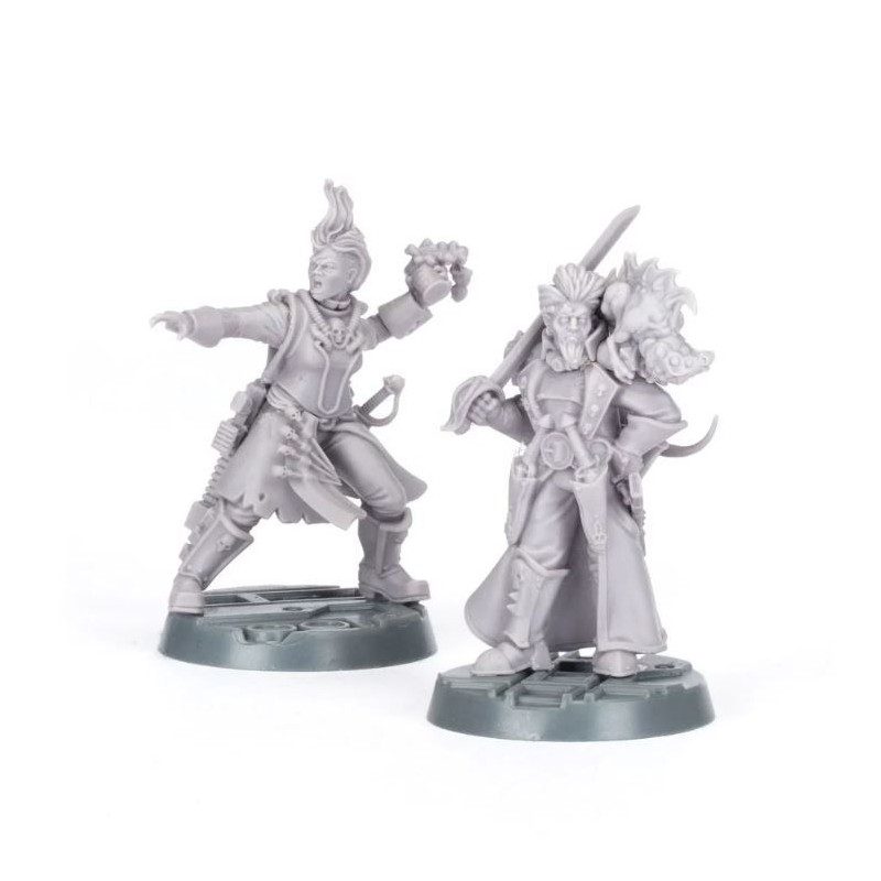 Ce kit en résine en plusieurs parties permet de construire Gaen Gorvos et Vunder Gorvos, une paire de Dramatis Personae à la disposition des gangs de hors-la-loi. Ces frères et sœurs nobles de gouttière sont vêtus de tous les atours que la ruche a à offrir, avec des manteaux et des coiffures soignées - et dans le cas de Vunder, un animal de compagnie bizarre perché sur son épaule. Tous deux manient une épée élégante - Vunder est également armé de deux pistolets de maître dans des étuis et d'un fusil à pompe porté à la ceinture, tandis que sa sœur Gaen "The Gunk Queen" Gorvos se lance dans la bataille avec un pistolet automatique, des couteaux de lancer imprégnés de toxines et ses bombes de gunk.
