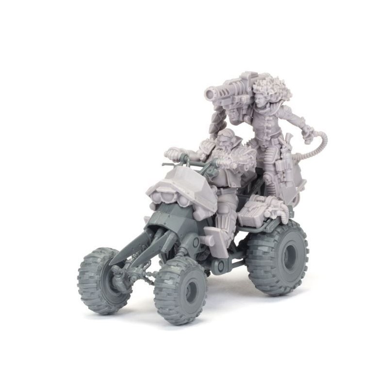 Ce kit en plusieurs parties permet de construire un Vepsa 'Minx' Merdena, monté sur un quad Orlock outrider personnalisé. Minx est un ajout fantastique à tout gang Orlock opérant dans les régions cendrées. Non seulement vous obtenez un autre quad plus robuste et un meilleur conducteur, mais "Mischief", le lance-roquettes personnalisé de Vespa, est une arme polyvalente et mortelle qui peut s'attaquer à tout ce que votre gang peut rencontrer. Big Pete les fait avancer à toute vitesse, ou effectue des manœuvres risquées pour se mettre dans des endroits étroits, tandis que Vespa abat les combattants ennemis en toute impunité.