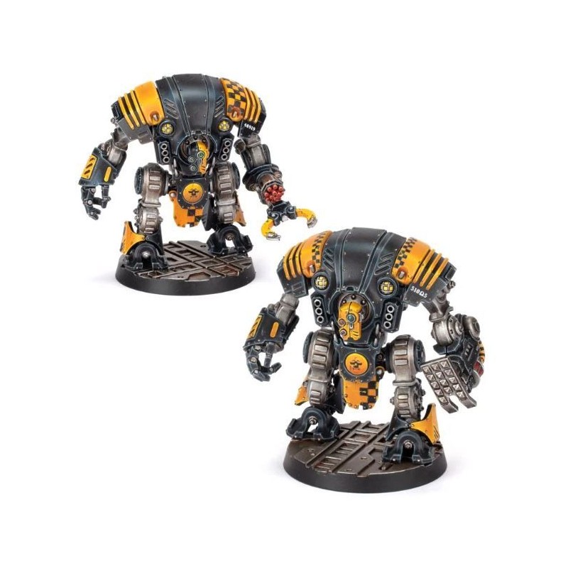 Ce kit plastique permet d'assembler deux Enforcer 'Sanctionner' Pattern Automata, des robots blindés pouvant être ajoutés à un gang de Palanite Enforcers. Chacune de ces brutes cybernétiques est équipée d'un lance-grenades intégré et peut recevoir diverses armes redoutables. Le kit contient deux griffes d'assaut Pacifier, ainsi que deux bâtons taser lourds, deux canons à percussion, deux béliers d'assaut et deux pinces d'appréhension, chaque arme pouvant être montée sur un bras ou l'autre, voire sur les deux. Chaque bras du Sanctioner peut être positionné comme vous le souhaitez, et le kit propose diverses manières de monter les jambes, ce qui permet d'ajouter de la variété à vos renforts robotiques.