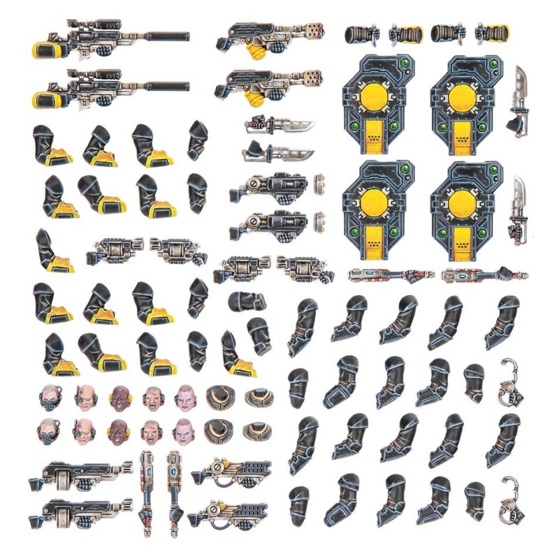 Ce kit en plastique comprend une sélection d'armes et d'améliorations pour vos gangs de Palanite Enforcers dans les parties de Necromunda. Avec des armes et de l'équipement spécialisés et mortels, vous serez prêt pour tout ce que le sous-monde et les désolations de cendre ont à vous opposer. Le kit contient également des têtes alternatives pour personnaliser davantage vos combattants.