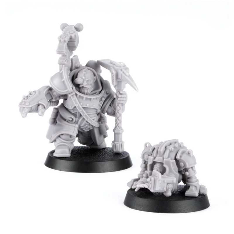 Ce kit en résine en plusieurs parties permet de construire un Claim Jumper et son Techmite Autoveyer - un Hanger-on et la bête exotique qui l'accompagne pour vos Ironhead Squat Prospectors. Vêtu d'une armure en maille résistante et chargé d'outils et de capteurs, le Claim Jumper défend ses prix avec un poing puissant, un pic puissant et un pistolet automatique Ironhead. L'extracteur de gemmes sur leur dos est utilisé pour le travail industriel, mais il est aussi très utile dans la ferraille, tandis que leur familier Techmite ouvre les caisses de butin et les crânes grâce à ses perceuses intégrées.