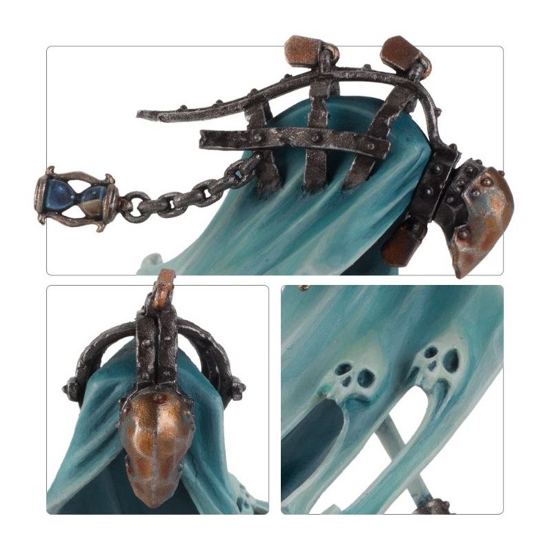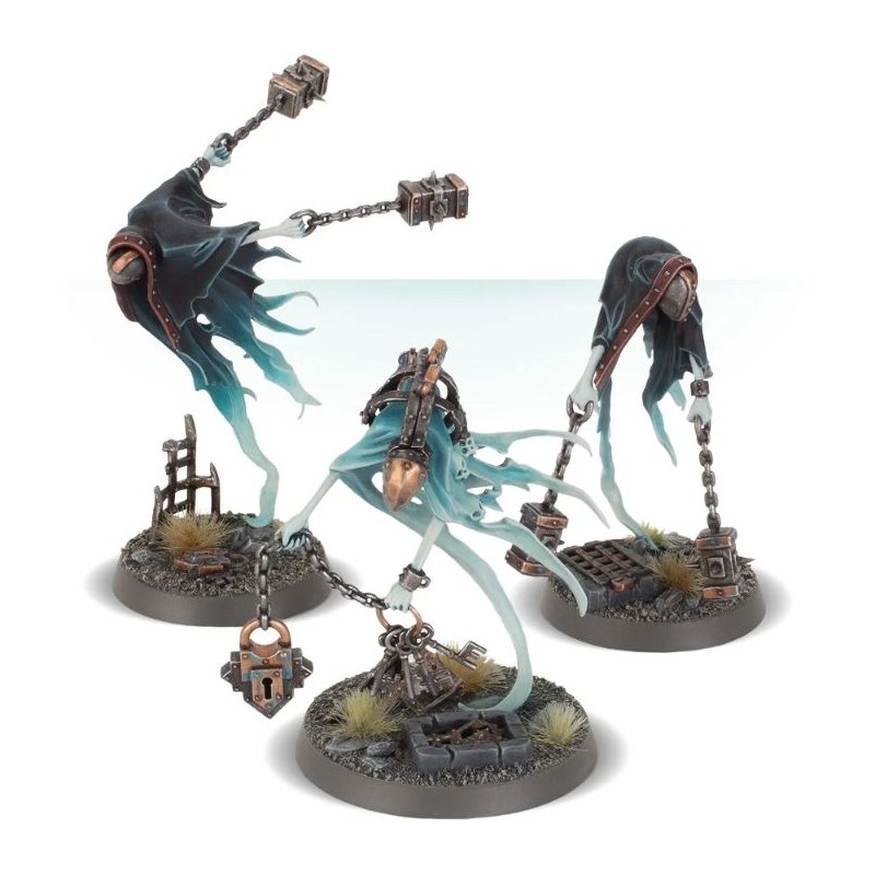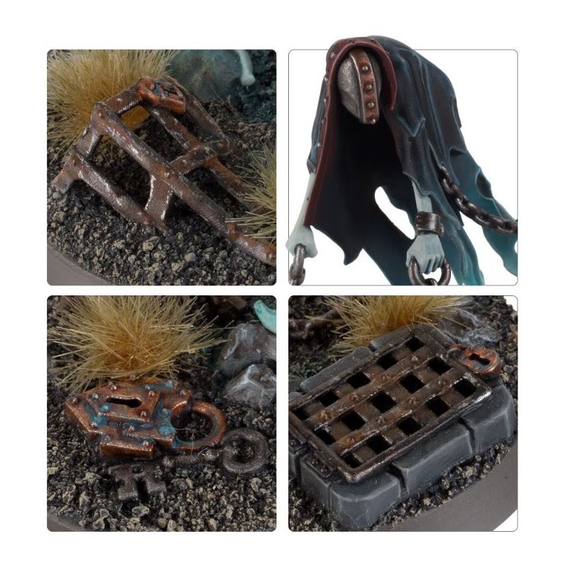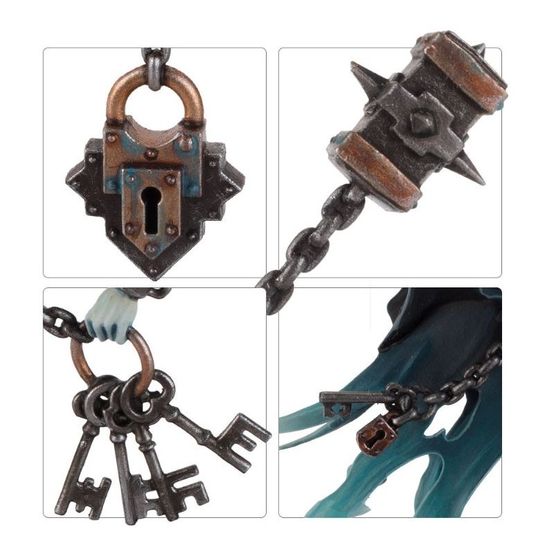 Ce kit plastique contient les composants nécessaires pour assembler Crawlocke the Jailor – un Spirit Torment – accompagné de 2 Chainghasts. Crawlocke lui-même n'est qu'un filet d'éther aux bras émaciés qui dépassent de son suaire – où l'on devine les visages tourmentés des damnés. Il serre un lourd cadenas ensorcelé et des clefs avec lesquels il afflige les vivants. Il y a 3 masques macabres au choix pour le Spirit Torment, et sa forme éthérée est prisonnière d'une cage à laquelle pend un sablier sépulcral. Les Chainghasts qui accompagnent le personnage sont munis de paires de fléaux spectraux, et revêtus de robes. 4 masques différents sont proposés pour les Chainghasts, tous sinistres et entièrement clos, et il y a 8 éléments de décoration – portions de gibet, serrures forcées et autres débris de métal – pour orner les socles.