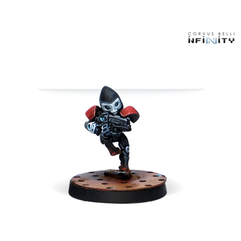 Ce blister contient 4 figurines en métal pour le jeu Infinity. Les socles sont inclus. Les figurines sont à assembler et à peindre.