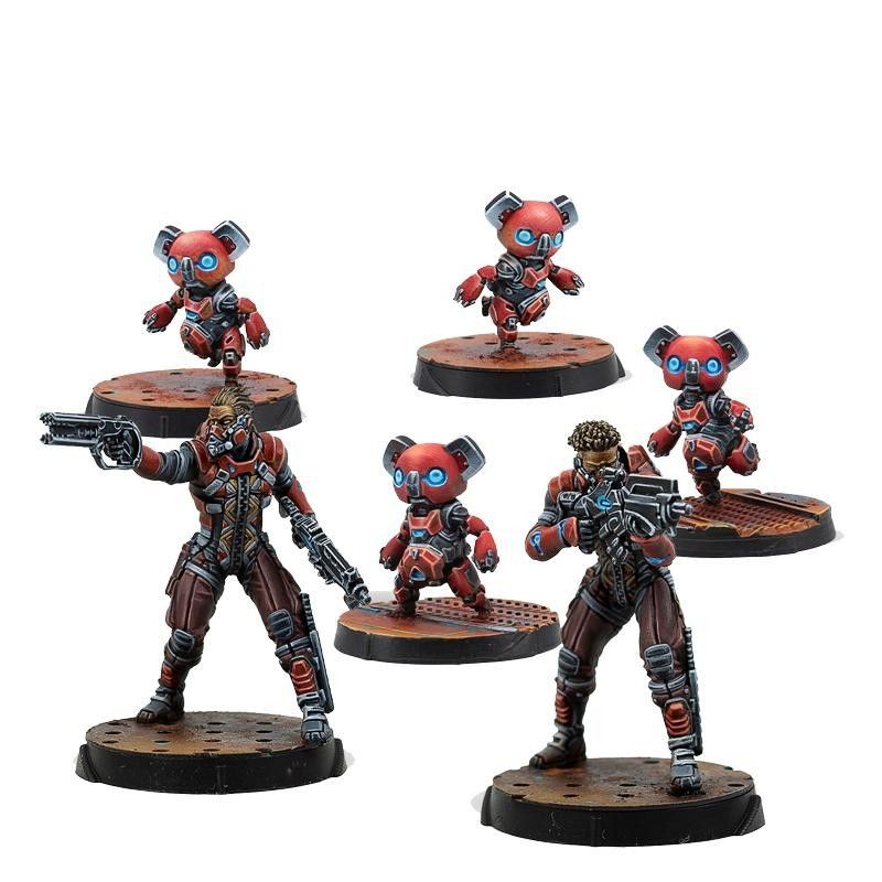 Cette boîte contient 6 figurines : Un Moran avec un fusil combi, un Moran avec un fusil d'abordage et 4 CrazyKoalas. Si vous recherchez un contrôle puissant sur table, les Moran Maasai sont le meilleur choix. Leurs CrazyKoalas frustreront l'avance ennemie et leurs Répéteurs étendront la zone d'effet de vos Hackers.