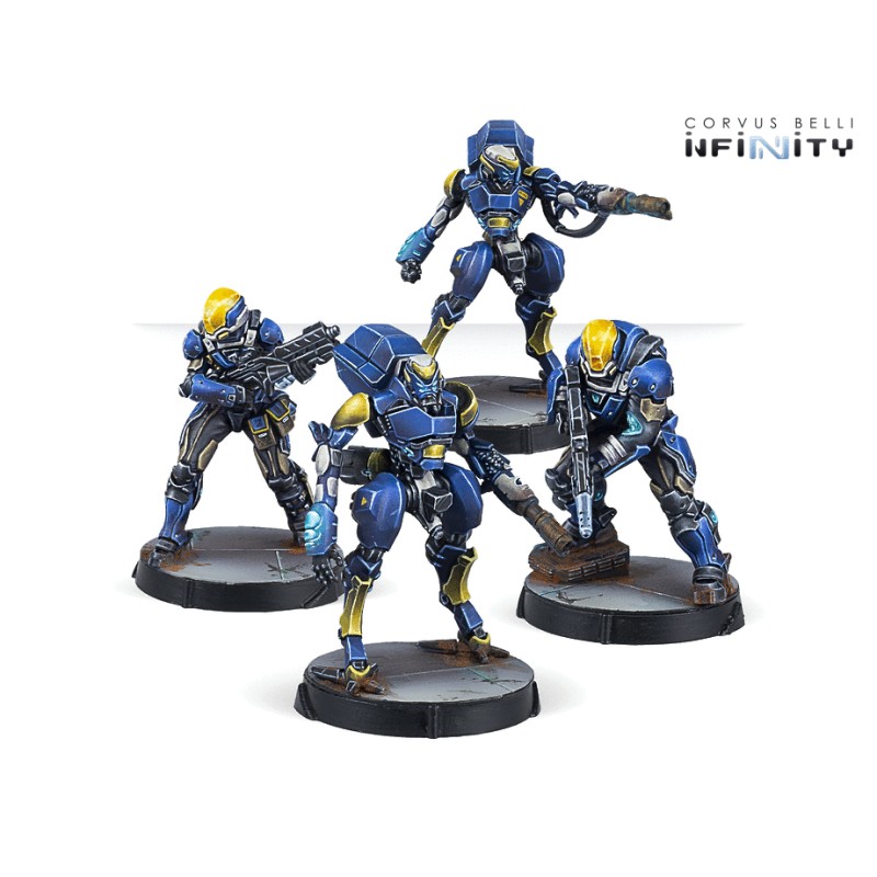 Ce coffret comprend 4 figurines: 1 Raptor avec MULTI Rifle, 1 Raptor avec Spitfire et 2 Devabots avec Heavy Flamethrower. Les avantages tactiques qu'offriront les Raptors grâce à leurs Devabots synchronisés feront la différence dans votre force Starmada (REF: 282007-0836).