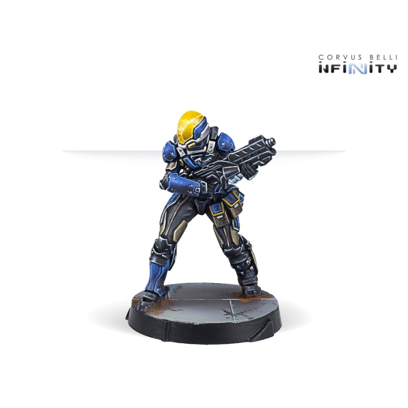 Description du produitLes Raptors font partie du régiment d'intervention rapide Starmada. L'unité se spécialise dans les opérations de foudre et les déploiements de grève et d'urgence immédiats. En tant qu'unité d'infanterie de marine, ils peuvent être déposés pour établir une tête de pont. Il est également de leur devoir de mener des opérations d’interdiction / d’abordage dans l’espace et d’établir le contrôle de sécurité / antiterroriste de SWORDFOR Armada.