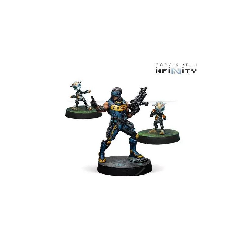 Ce blister comprend trois figurines : Un Gangbuster Hacker et deux MadTraps. Il n'y a pas de meilleure option pour arrêter l'avancée de l'ennemi que d'inclure un Gangbuster dans votre armée O-12.