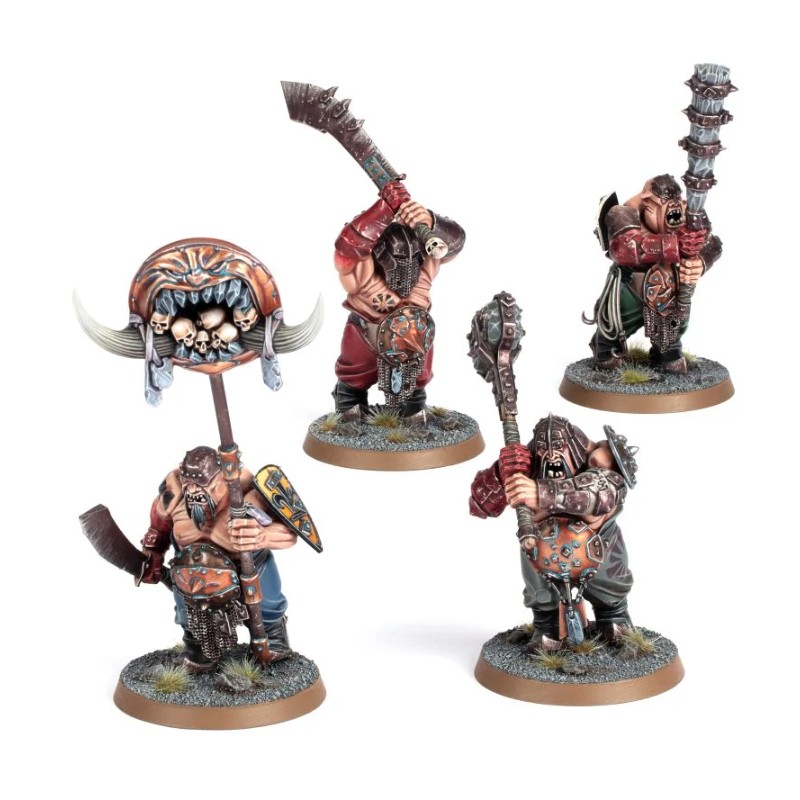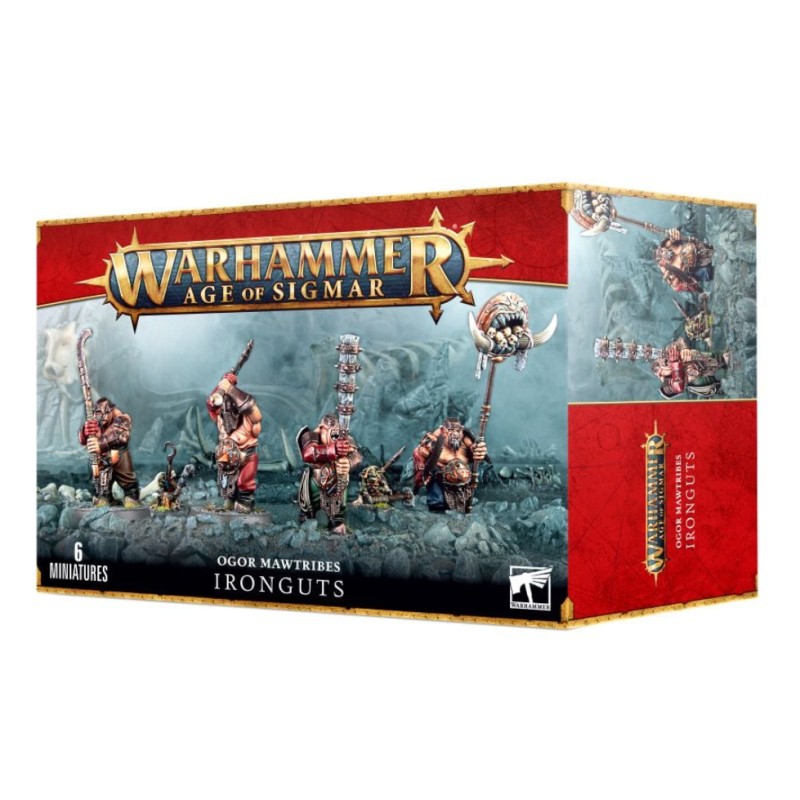 Ce kit plastique contient 110 pièces permettant de monter quatre Ironguts armés de lourdes armes contondantes. Il propose de nombreuses options telles que des têtes avec casque et autres boucliers de récupération. Il y a aussi de quoi représenter un Gutlord, un porte-rune de la Gueule et un Beugleur.