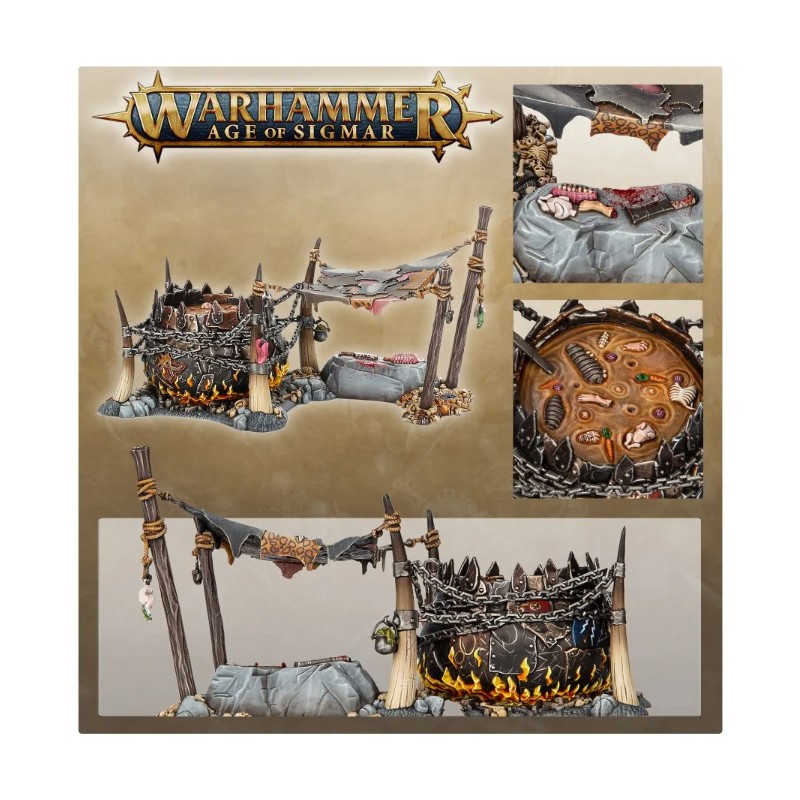 Cet élément de terrain bénéficie de plus d'une manière à une armée d'Ogors. Les figurines adverses tuées dans ses parages peuvent finir dans la marmite pour concocter un brouet régénérateur au profit des unités des Mawtribes. C'est également un accès au Dieu Glouton, qui aide vos Sorciers situés non loin à lancer et à dissiper des sorts.