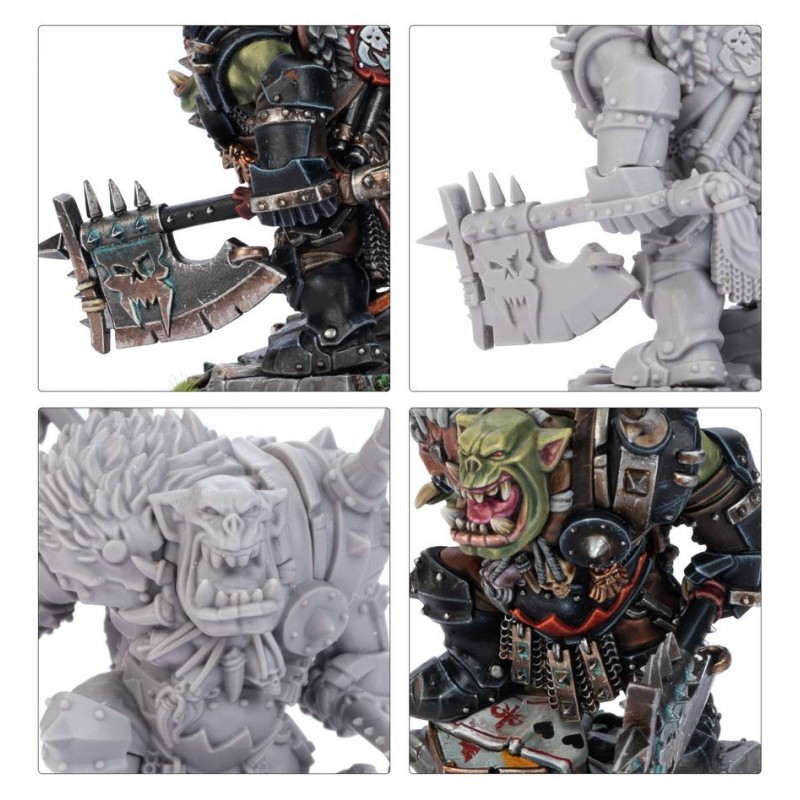Ce kit en résine permet d'assembler un Orque vrément gigateks', et qui peut faire office de Chef de Guerre Orque Noir comme de Grand Chef Orque Noir dans votre armée de Tribus d'Orques & Gobelins. Ce commandant fantassin est protégé par une lourde armure de plates, et il porte une grosse et robuste hache pour découper quiconque se dresse contre lui.