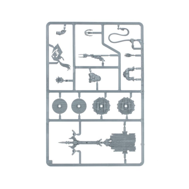 Ce kit contient également un choix de têtes interchangeables pour les équipages d'orques ainsi que l'option de décorer un des casques avec une intimidante mâchoire postiche.Ce kit est composé de 82 éléments en plastique et est fourni avec 2x Socles Rectangulaires Citadel de 50mmx100mm. Ces figurines sont fournies non peintes et nécessitent assemblage