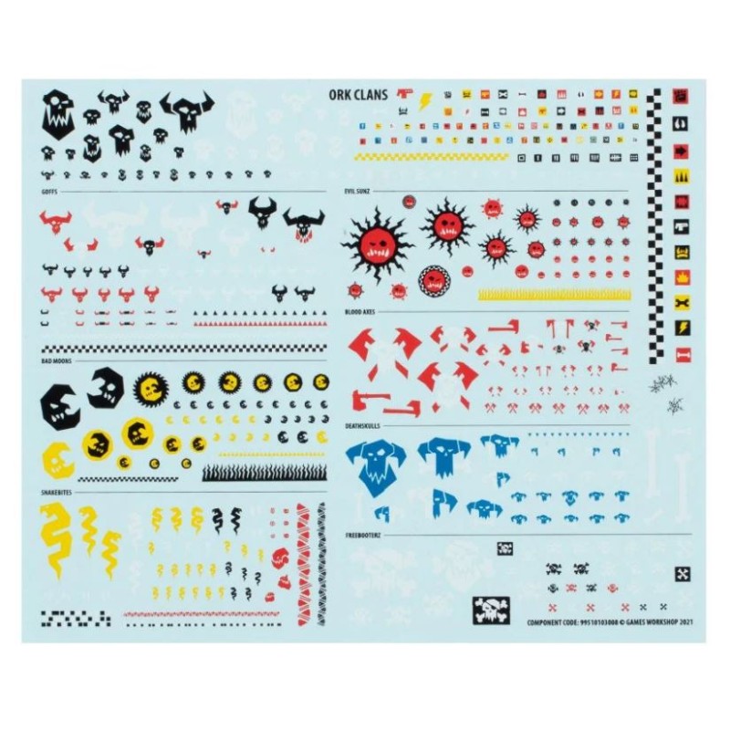 Le kit comprend 87 composants plastique, plus 10x socles ronds Citadel de 32mm et 1x Feuille de Décalcos Orks. Ces figurines sont fournies non peintes et nécessitent assemblage.