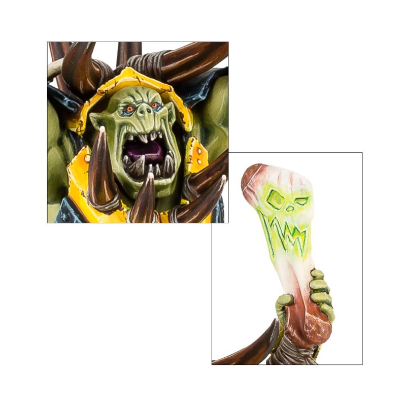 Ce kit plastique contient toutes les pièces nécessaires pour assembler un Warchanter, celui qui assène le son de la Waaagh!. Muni d'un gourdin de Gork dans une main et d'une matrak' de Mork dans l'autre, il porte une armure, des cornes et des glyphes, plus un kikoup' à la ceinture. Il y a 14 composants, et un socle rond Citadel de 40mm.