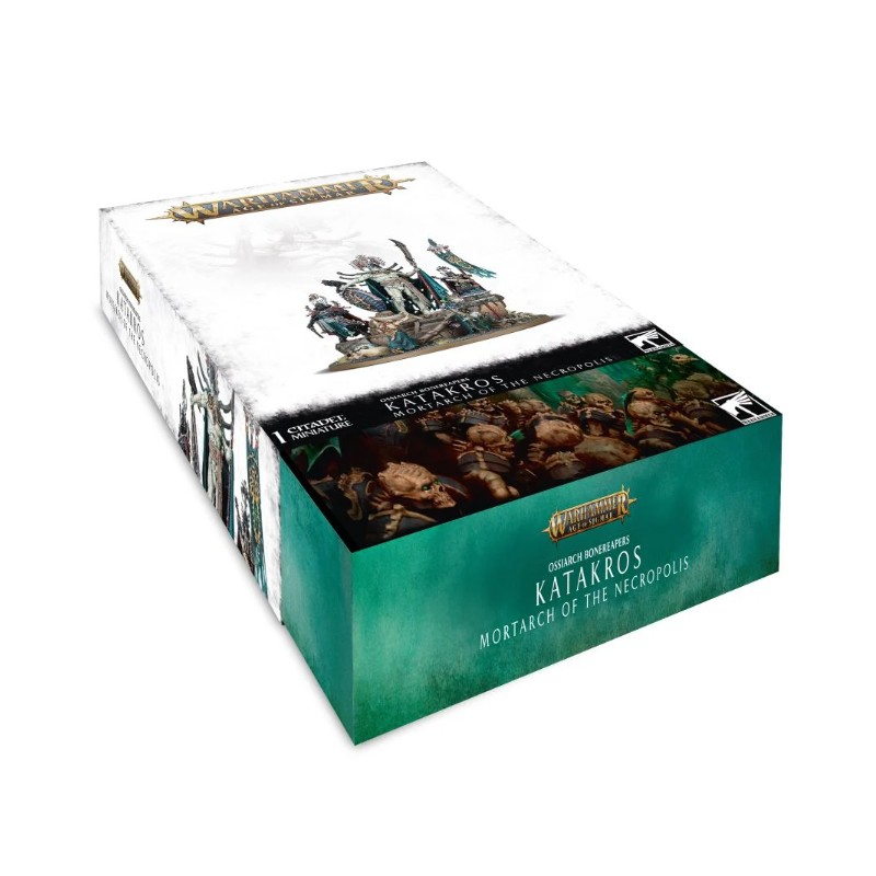 Katakros se dresse au centre d'un socle sculpté, entouré de sa suite de fidèles, le Prime Necrophoros, le Liege-Immortis, le Gnosis Scrollbearer et l'Aviarch Spymaster. Armé d'Inda-Khaat et du Bouclier Immortis, il les domine tous de sa grande taille. Il fait une pièce centrale toute trouvée pour n'importe quelle armée d'Ossiarch Bonereapers.