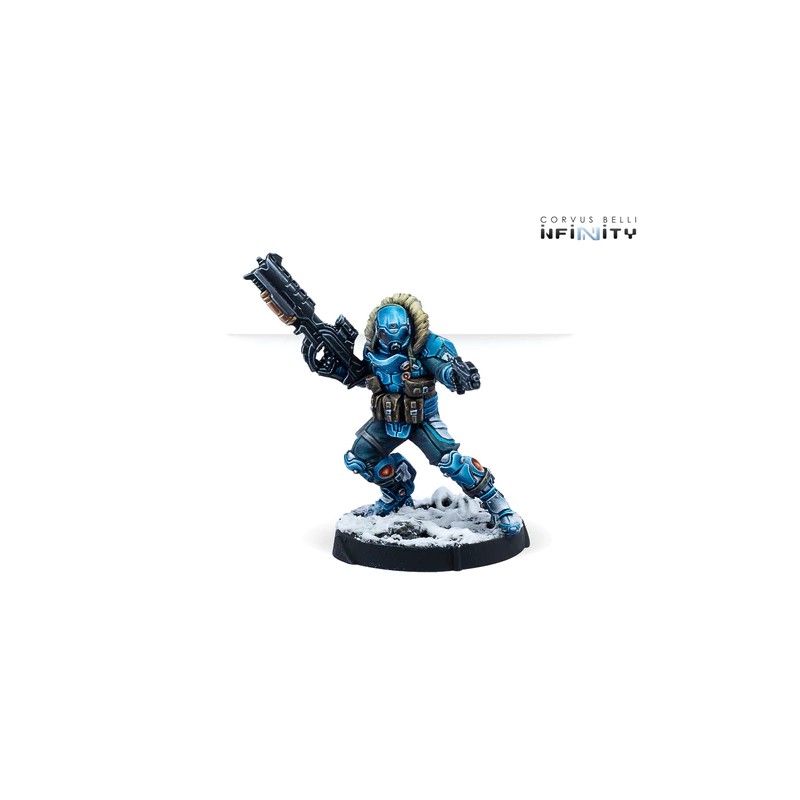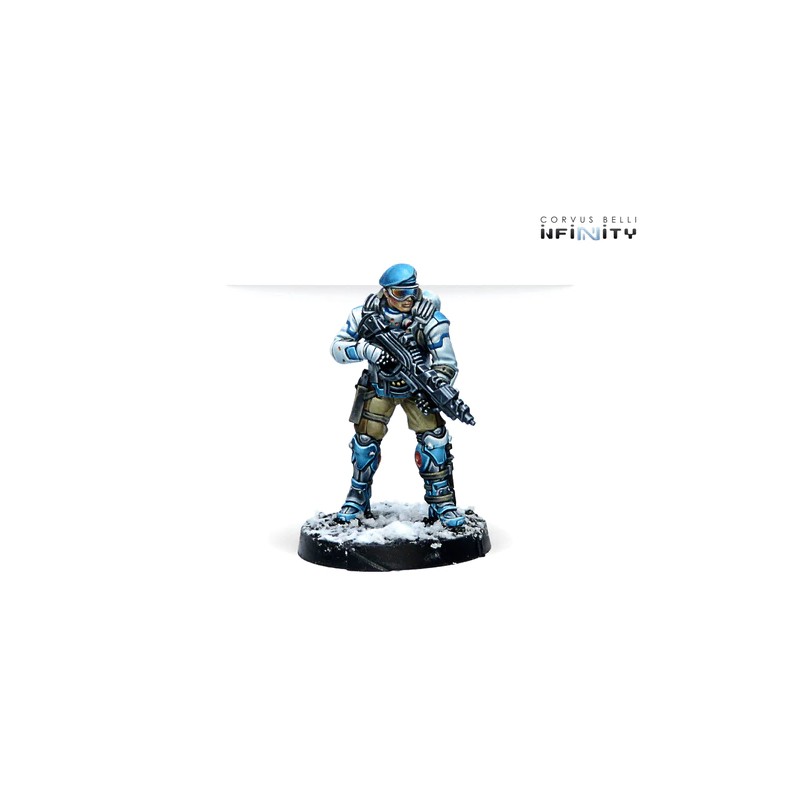 Contient 10 figurines en métal pour le jeu Infinity, ainsi que leurs socles. Les figurines sont à assembler et à peindre.