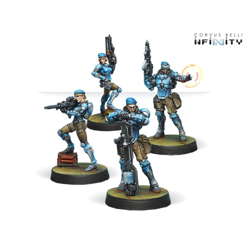 Description du produit"Les fusiliers sont l'épine dorsale du Complexe Militaire PanOceanien, avec une présence dans tous ses territoires. Les membres de ce corps d'infanterie légère sont des soldats professionnels formés à une grande variété de situations de combat qui savent qu'ils peuvent compter sur des ressources abondantes et un soutien constant. Ils sont bons combattants, endurcis et prêts à participer aux conflits modernes, nationaux et étrangers. Les Fusiliers sont le meilleur corps de l'armée, ceux qui font bouger les choses. Le reste est là pour leur apporter du soutien. Oubliez les armes sophistiquées de haute technologie et les opérations spéciales, les Fusiliers sont l'Armée, la Vraie ! "