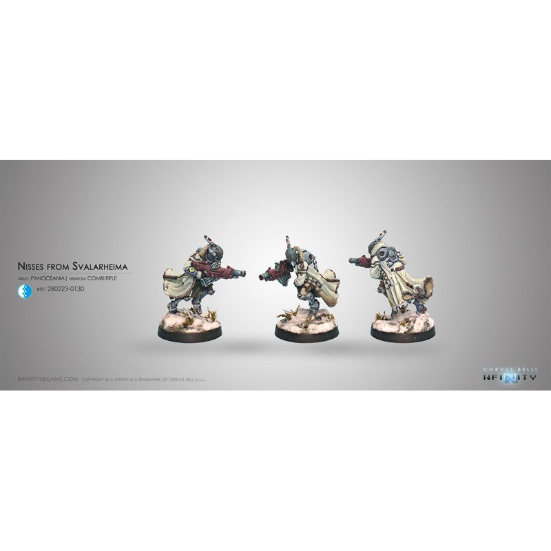 Les PanOceanian Nisses sont un groupe d'assaut tactique aguerri de Svalarheima, créé pour des opérations de protection et de défense. Ils n'ont peut-être pas l'air aussi amical que leurs homonymes de fantaisie, mais leur tempérament et leur force sont au rendez-vous. Les Nisses reçoivent une formation spéciale pour pouvoir opérer dans des environnements glacés, comme il convient au climat extrêmement rude de leur planète natale, Svalarheima.