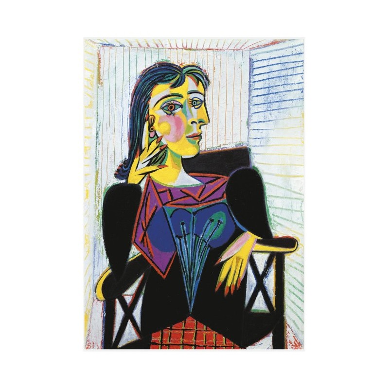 Le puzzle reproduit le célèbre portrait cubiste de Dora Maar, photographe, peintre et muse de Picasso. Dans cette peinture, l’artiste joue avec les formes, les angles et les couleurs pour offrir une représentation expressive et singulière de sa compagne, caractéristique de son style novateur du XXᵉ siècle.